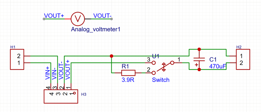The back panel involved a bit of circuit design. I chose to have the voltmeter measure the voltage directly out of the module, so that I know what the actual voltage is before I turn on the switch. This will give it a few seconds to stabilize. Additionally, since I found the voltage output to be quite noisy, I added a 470uF capacitor, which smoothed things out quite a bit. To discharge the capacitor and make sure it doesn’t backfeed into the power supply when switched on, I added a large 3.9 ohm resistor. The resistor is wired such that it discharges the capacitor when the power switch is turned off. This additionally has the effect of discharging any similar capacitors on the connected breadboard/device, which reduces the potentially negative effects of a shutdown that doesn’t discharge capacitors (like brownouts).